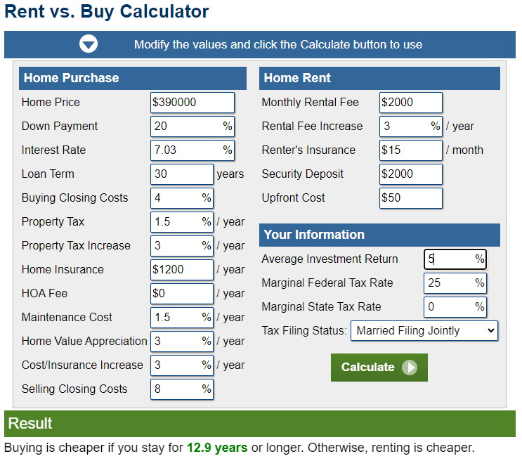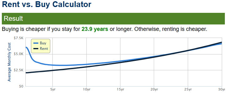 To be clear, there is no “right” answer here. We’re of the belief that you’re better off avoiding the home purchase for now but personal life circumstances can change that. Finding an amazing deal can change that. Being certain you will stay somewhere for 10+ years will change that. Lifestyle decisions can’t be plugged into a calculator.