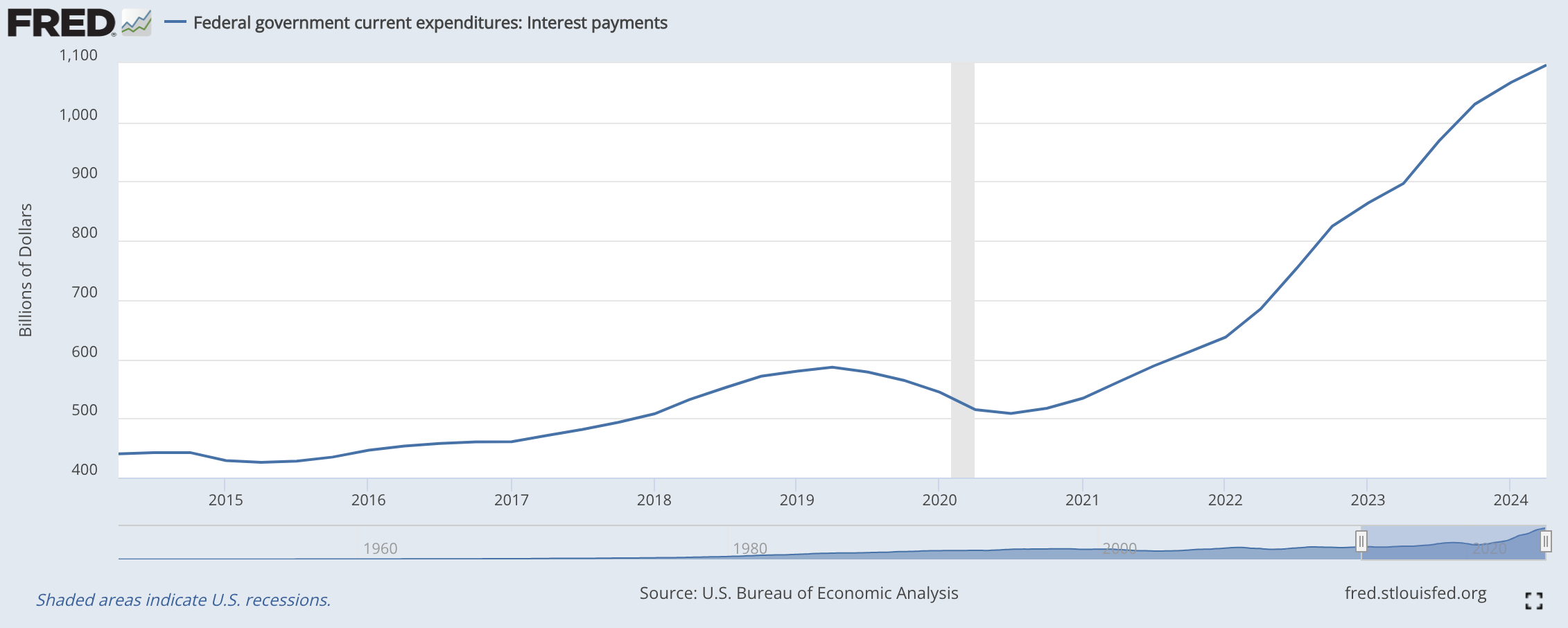 Welcome Avatar! After President Powell announced that inflation is transitory the masses are coming to grips with what this really means: this is the new normal. With fiscal deficits crossing $35 Trillion and interest rates at ~5%, it means that the only way to keep this ponzi going is by printing more money. While rates could drop to 0% if they decide to go in that direction (or negative like the Europoor region for a period of time), that would just lead to “free money” which in essence is the creation of money with cheap debt.
