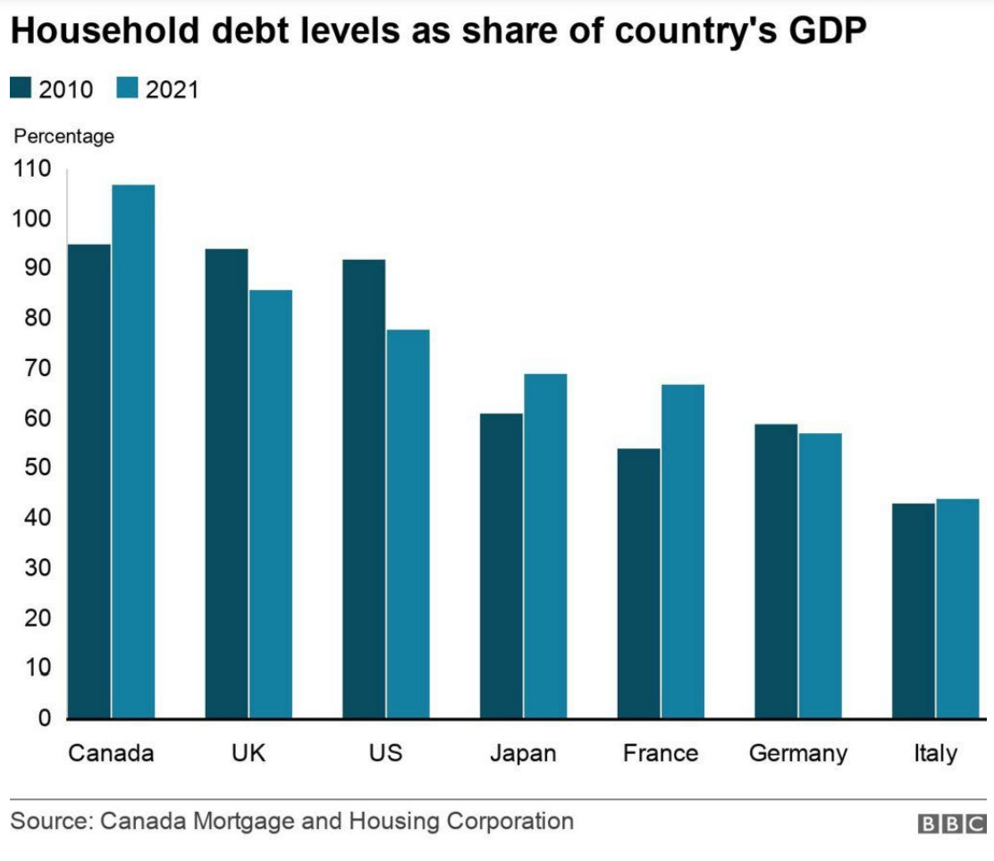 a. Debt-to-Income Ratios and Household Economics: By 2020, Canadian households were among the most indebted globally, with a debt-to-income ratio exceeding 170%. This means that for every dollar of income, Canadian households owed $1.70 in debt. Such high indebtedness, largely driven by mortgage debt, highlights the vulnerability of households to economic shocks, interest rate hikes, or housing price corrections.