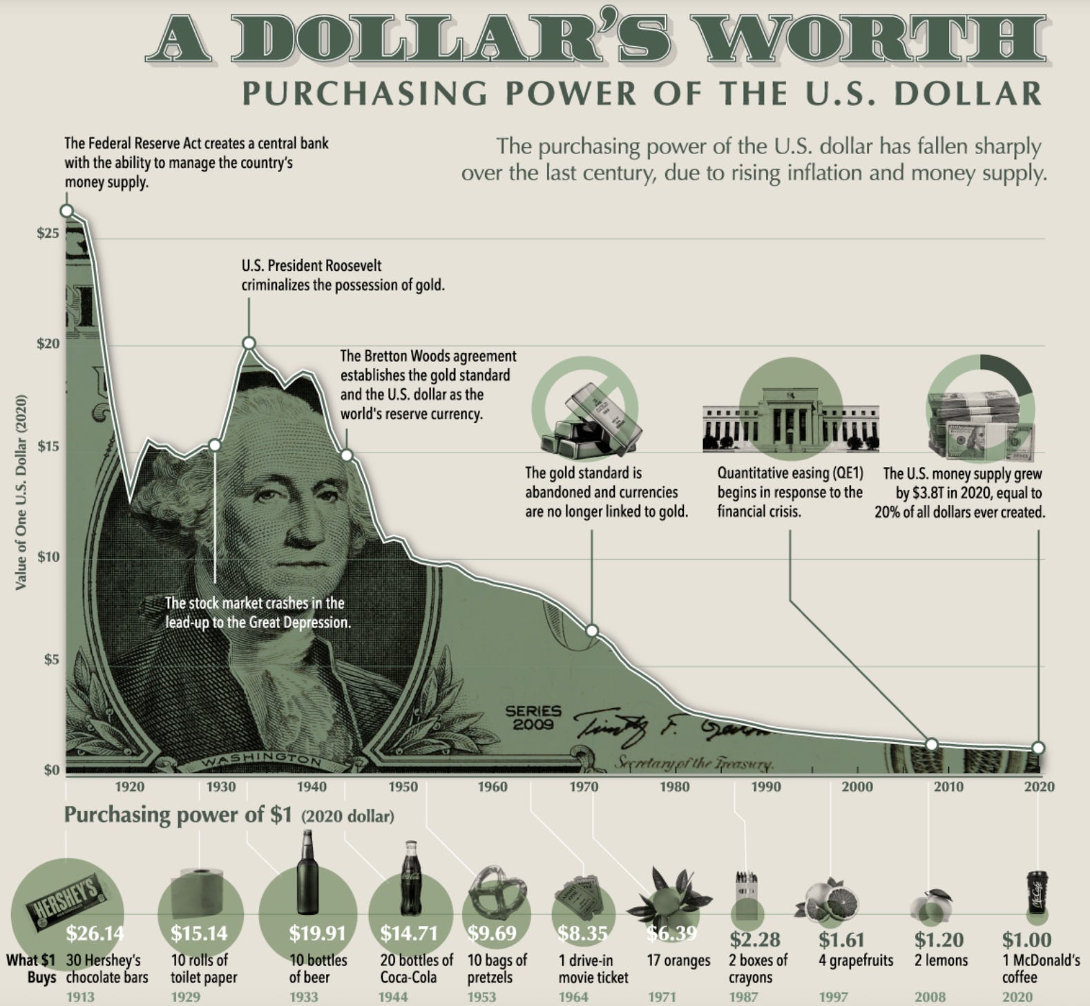 The King of fiat? Since the creation of the Federal reserve in 1913… the dollar is down ~96%.