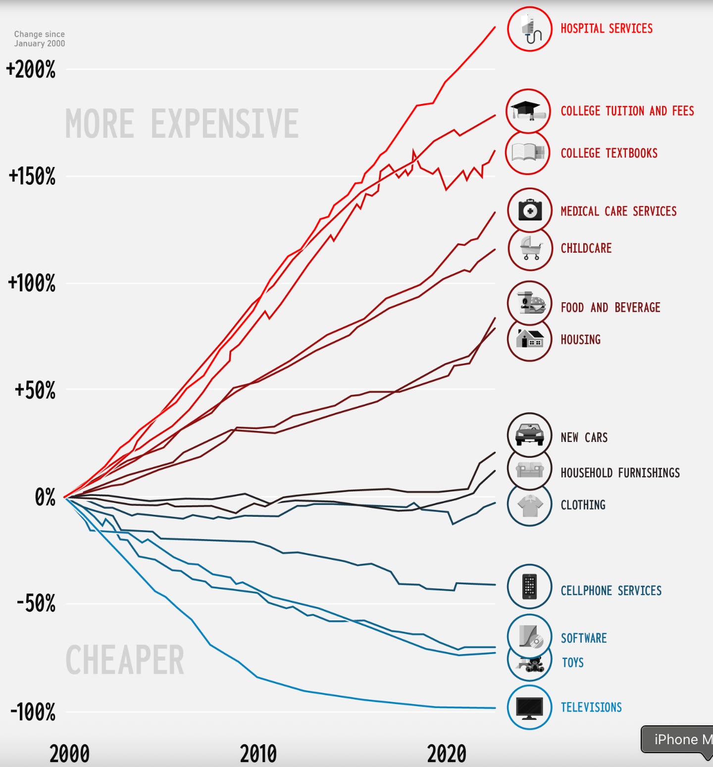 The craziest part? Housing went up the least relative to the other things you need to survive. Can’t eat your television unfortunately.
