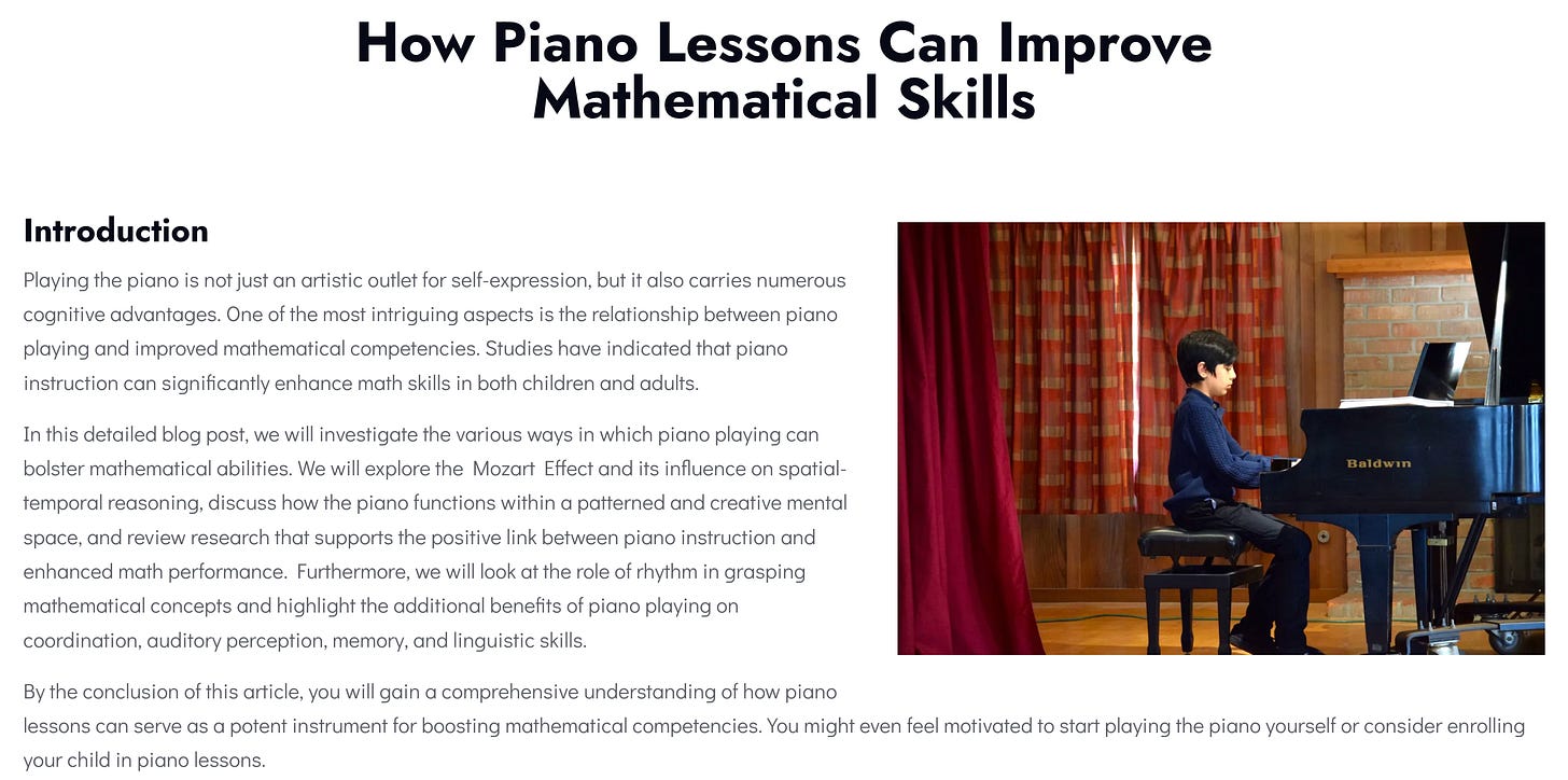 Math and music are heavily related. If you were to go and find high performing pianists the chances of having good math scores is higher.