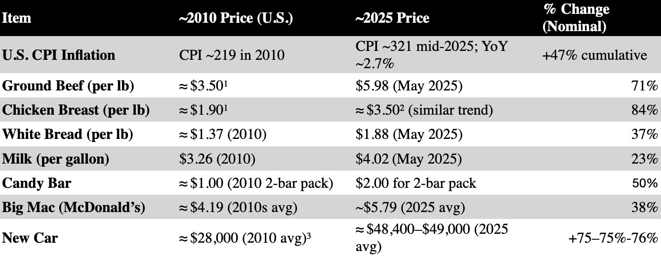 If so then you use the government inflation numbers. If not? Maybe look at the items you need to survive (food/cars, housing etc).