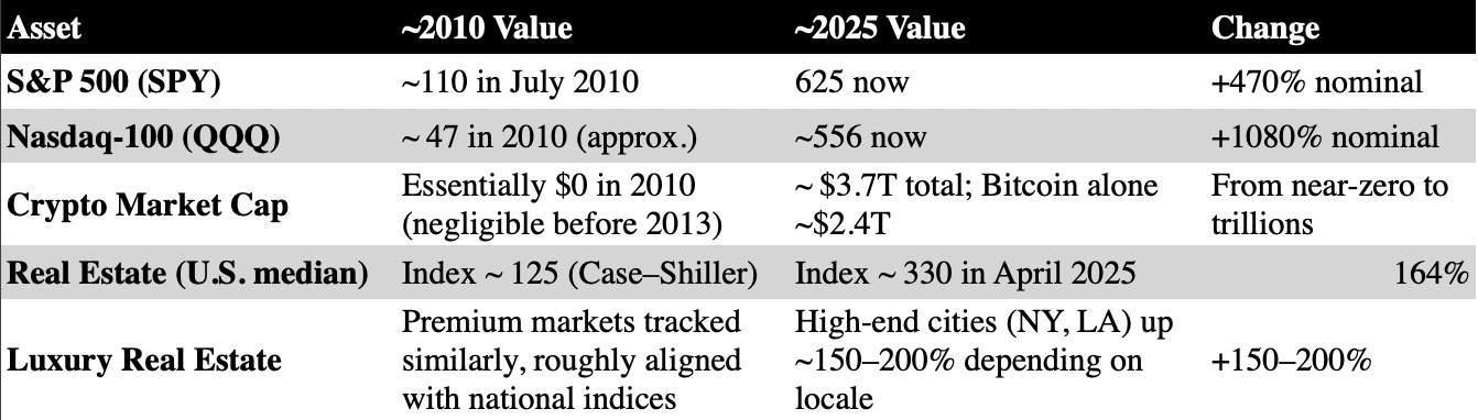 You can come up with your own way to measure asset inflation. Using Crypto probably isn’t fair since the returns were in the 10,000%+ range. Using only real estate is probably too low. Using a mix of stocks, real estate, regular cost of living and general inflation? Probably much closer to real numbers.
