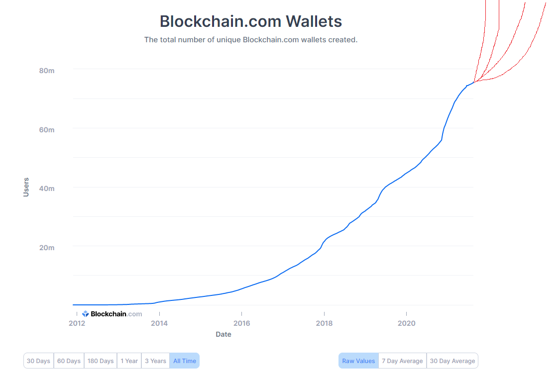If that’s the case you’re looking at 150M+ unique wallets in short order. There is a real (although statistically unlikely) chance that you’re looking at half a billion users in just a year or two (we haven’t even included people onboarding to centralized exchanges like Coinbase).
