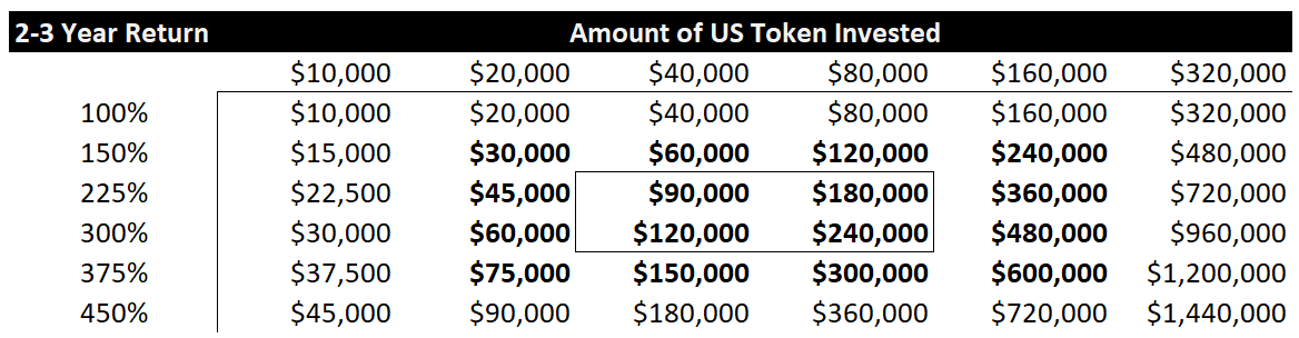 Turning Back to You: Since we’re trying to attract the sharp people with a chance at making it, we suggest you use a simple compound interest calculator. For *fun*, type in an extremely high rate of return for just 2 years (LINK). You’ll find out that it is practically *event based* income (event is when you sell a company or have a one time windfall of income - historically we’ve pegged event based income at $500K+ US Trash Token).