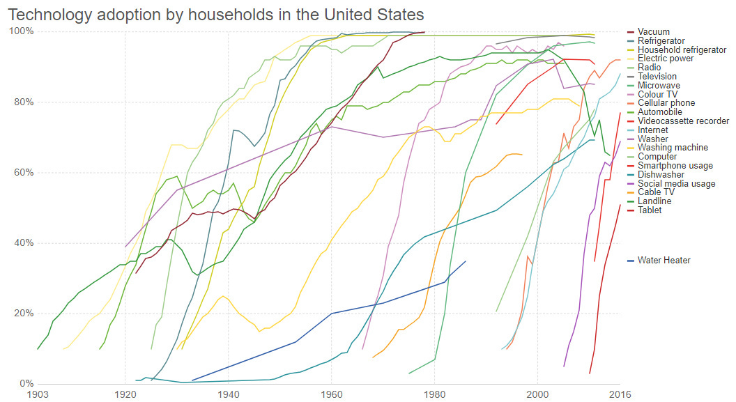 The first part shows you that new technologies are adopted faster and faster. IE. The smartphone was picked up faster than the internet. The internet was adopted faster than cable TV. So on and so forth.
