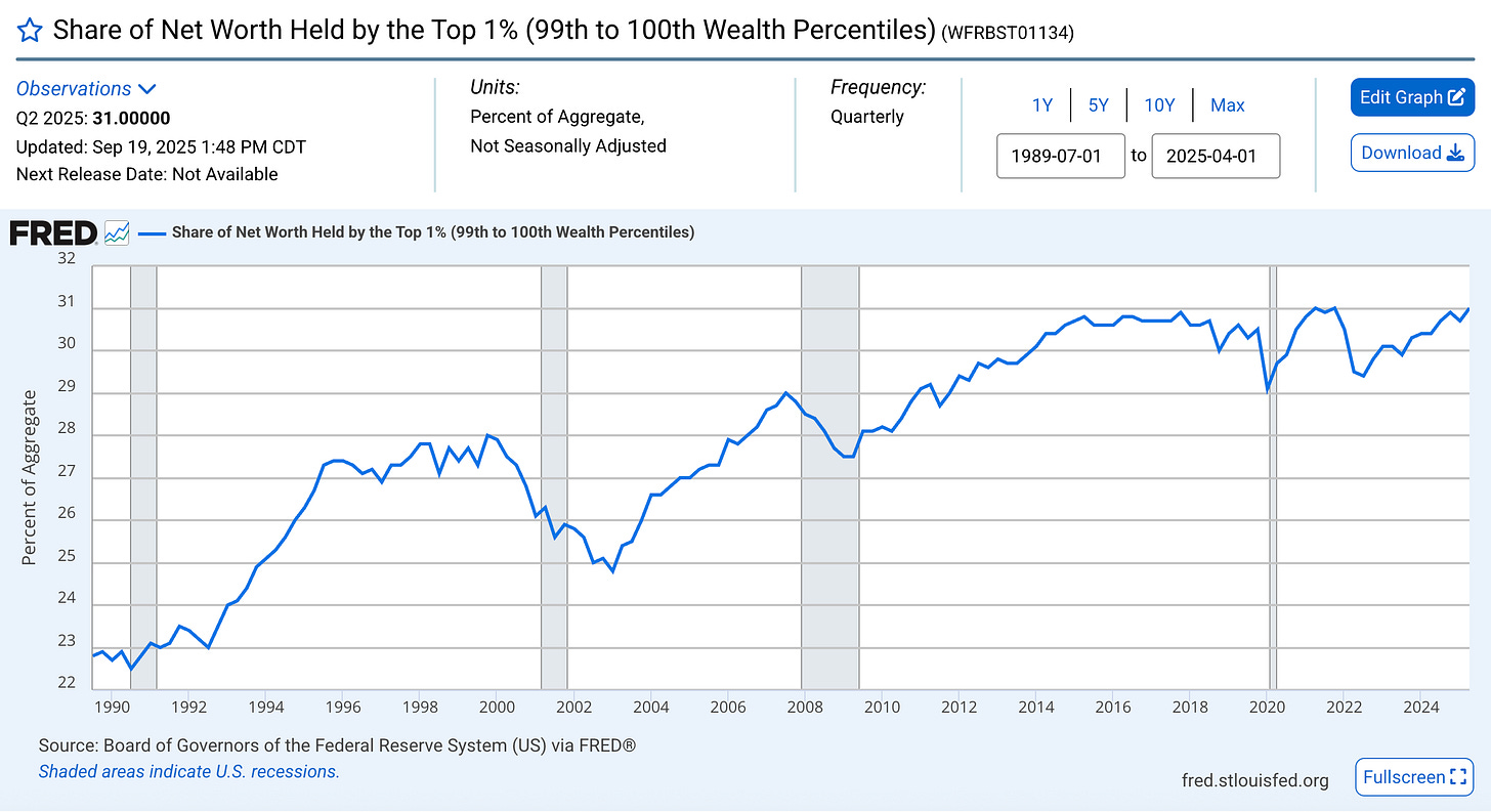 The top 1% now control a far larger share of net worth than they did 30–40 years ago. That concentration isn’t a talking point to “eat the rich”. It’s proof that the mechanisms of ownership (equity, businesses and outsized capital gains) are what create generational wealth.