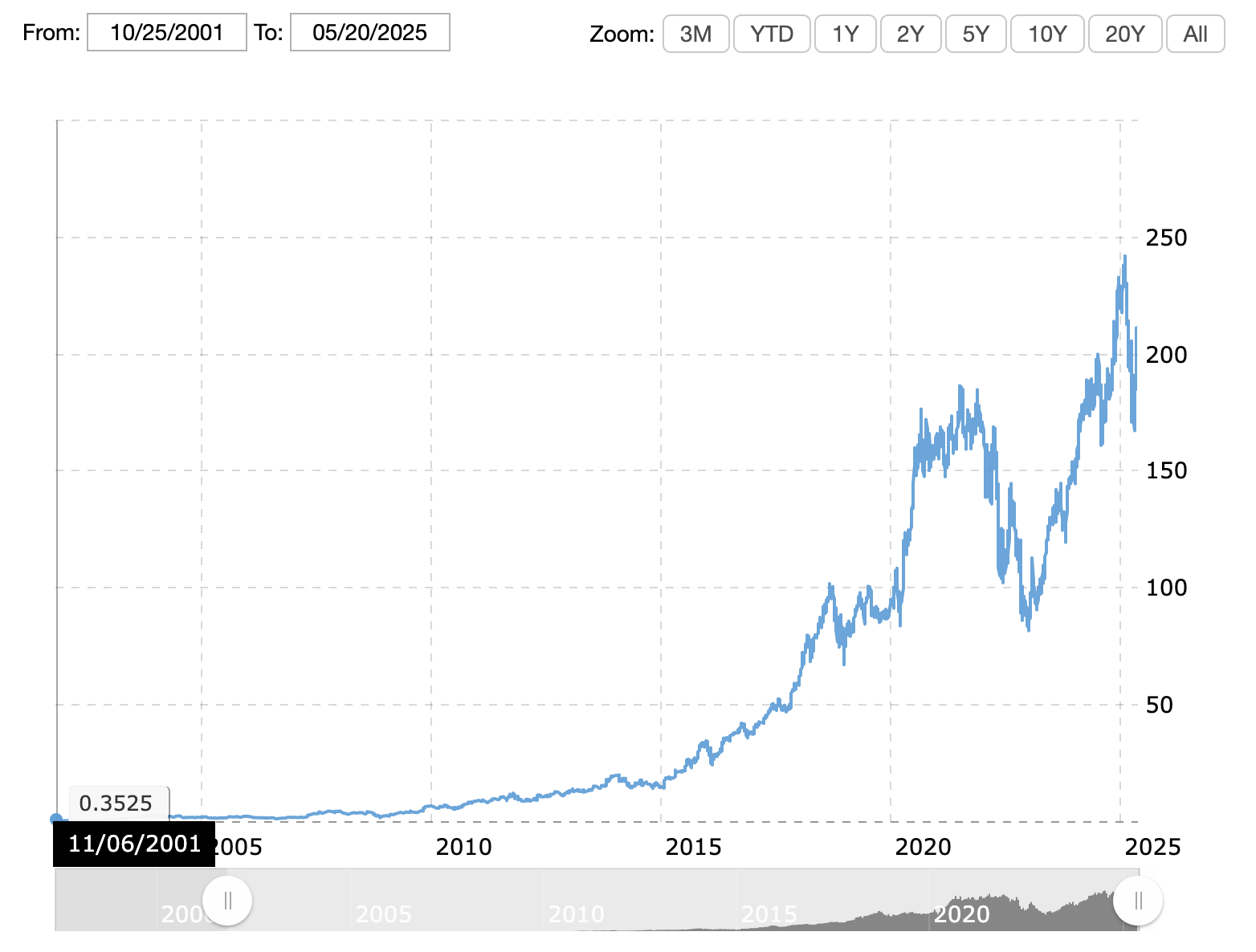 Everyone would have laughed at you. Saying you’re wrong and you’ll never recover. Reality was that Amazon the Company was doing fine. Still growing, innovating and improving the business. Today the stock price is at $205.