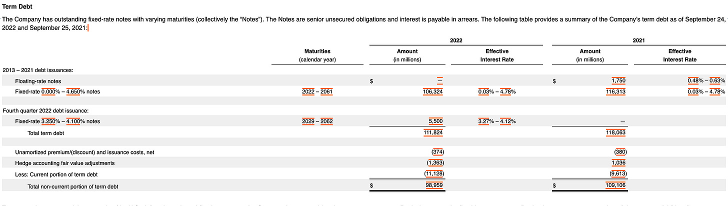 It gets a bit worse. The mega firms (at least the smart ones), issued debt when interest rates were near zero at rates well below 5%. Feel free to look it up! Apple issued notes that pay a whopping 2.2% coupon (source)