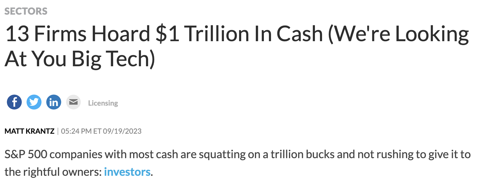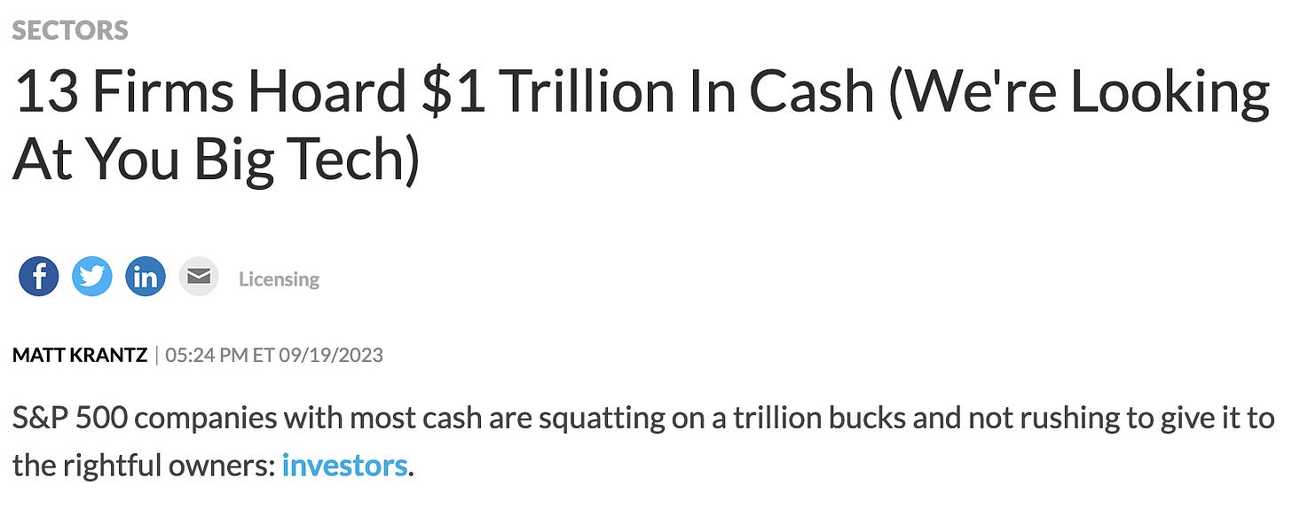 Four of the top 7 cash balances are the “magnificent 7” holding up the S&P 500