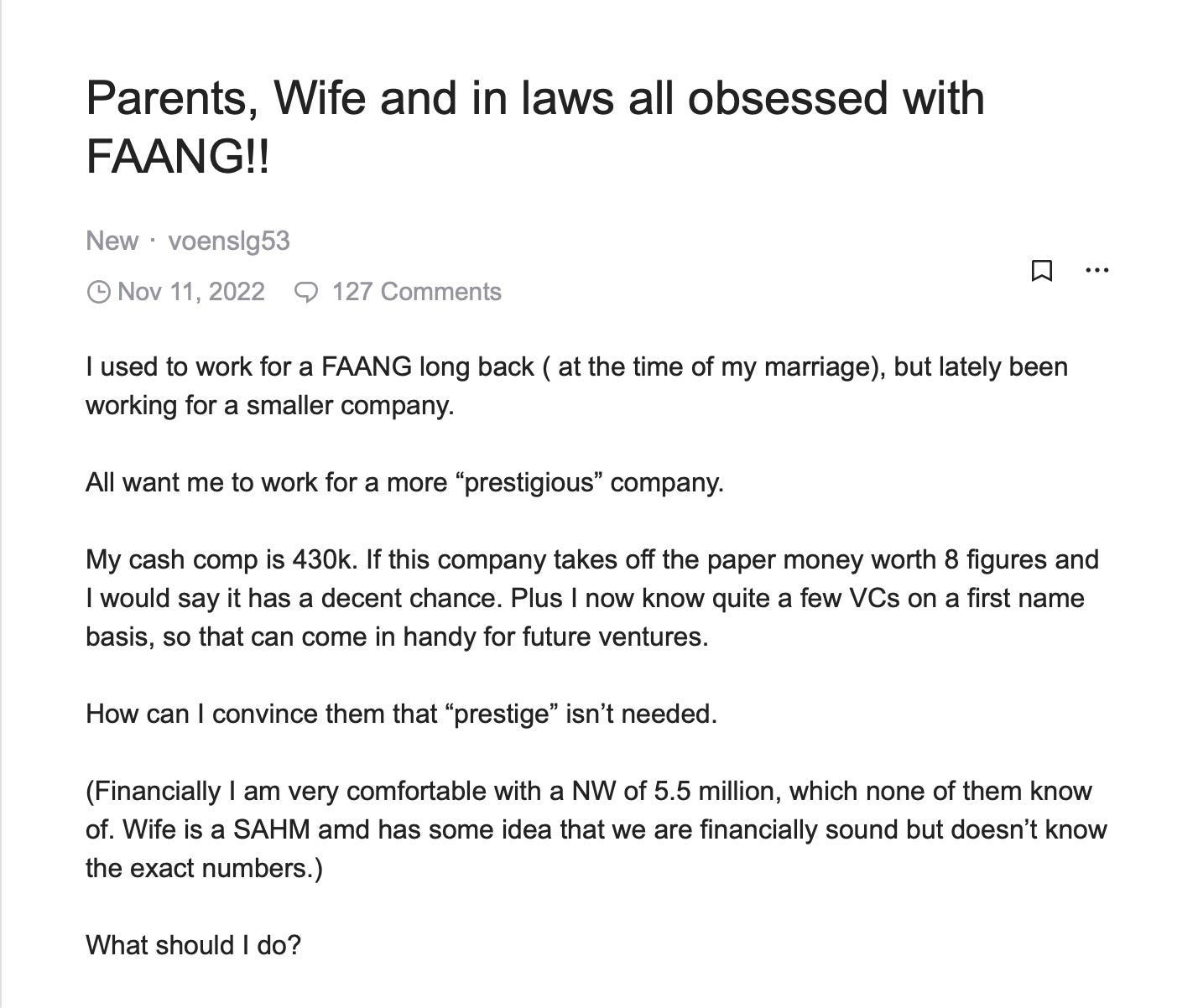 These are the kinds of questions someone would ask if they had a dozen offer letters. Sure, you could just go with the highest compensation, but if you have to work on an ancient system from 50 years ago that drives you insane, you’d probably take a -10% cut to go to a more modern company