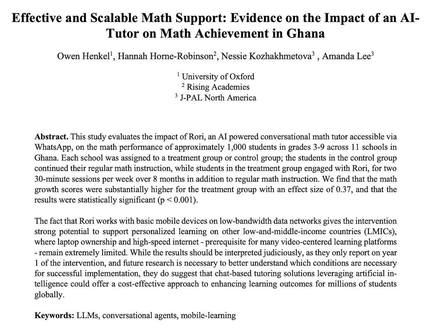 AI tutors are already being implemented in schools. African governments are actively working on this. Studies have already been published from Ghana showing that students have improved at every grade level: